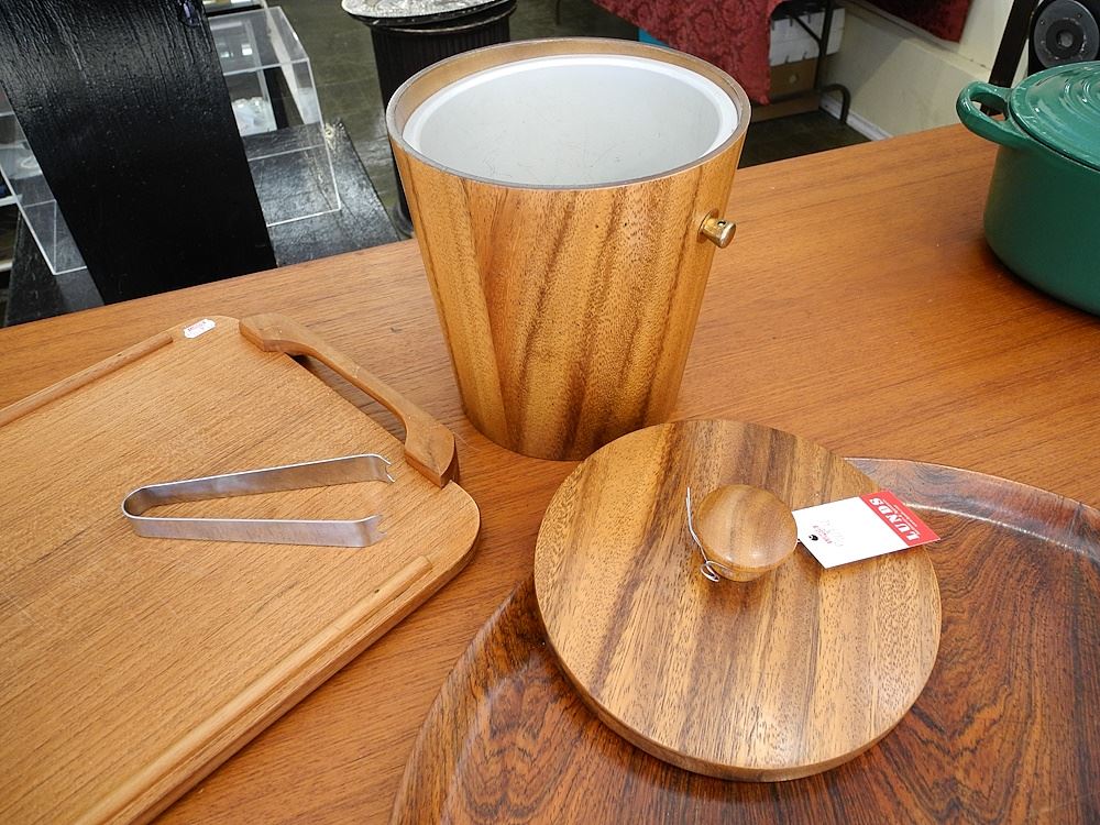 3 Scandinavian Modern Housewares: Ice Bucket / Swedish Tray / Danish Tray.