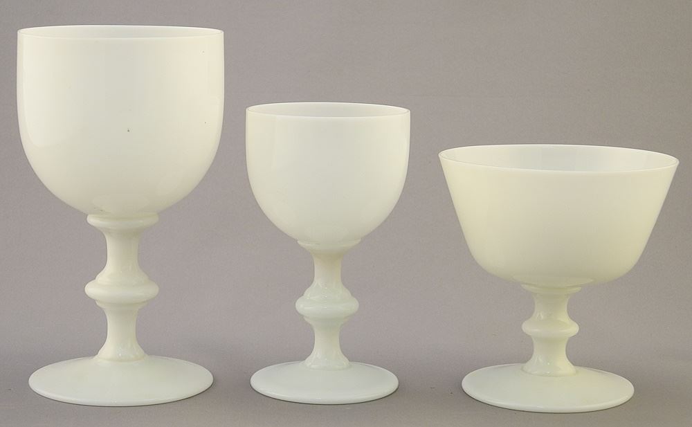 LOT 95 15 Various White Glass Stem Cups, 3 7/8" - 5 3/4"H. Estimate: $50 - $60 Sold For: $40 Auction Date: Tuesday, September 26 2023 at 4:00 PM