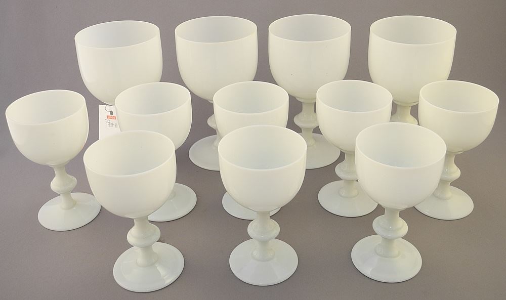 15 Various White Glass Stem Cups, 3 7/8" - 5 3/4"H.