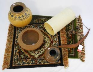 LOT 185 Danish Modern Teak Wall Sconce (12") with 3 Hand Thrown Ceramic Vessels, 3-9"H (1 restored) and 2 M Estimate: $50 - $100 Sold For: $90 Auction Date: Tuesday, September 26 2023 at 4:00 PM