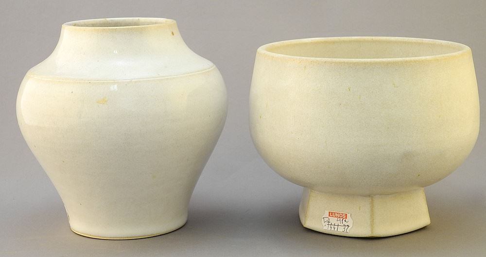 LOT 243 4 Stoneware Vases signed Kybor (Fred Owen)'90, dated variously, 4 1/2" - 5 1/2"H. Estimate: $50 - $80 Sold For: $160 Auction Date: Tuesday, September 26 2023 at 4:00 PM