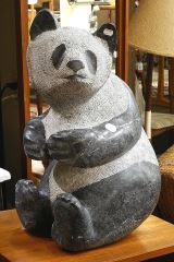 Marble Sculpture Attributed to Babe Gunn, 21 1/2 x 13 1/2 x 15", Seated Panda.