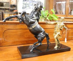 LOT 159 Equestrian Sculpture after (Luis) Domenech, 17 1/4" x 18 1/2" x 8", "Rearing Horse & Handler". Estimate: $150 - $300 Sold For: $250 Auction Date: Tuesday, September 26 2023 at 4:00 PM