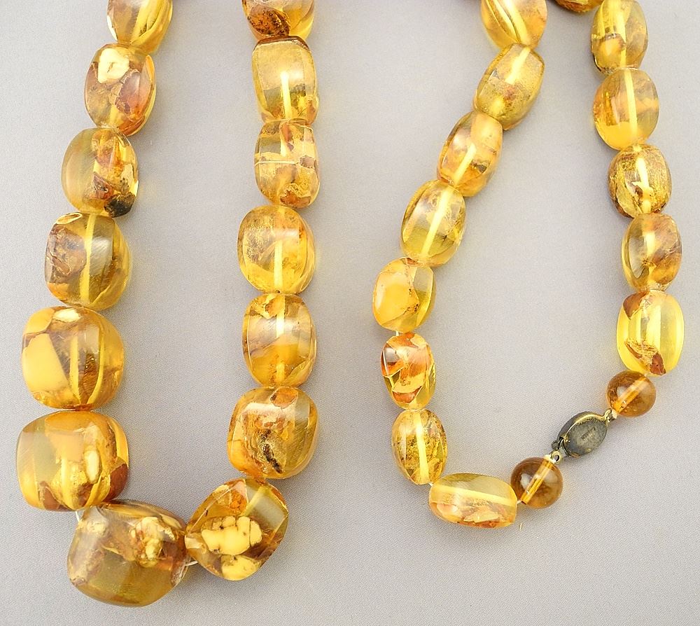 LOT 280 Amber Squared Pebble Necklace, Chinese "Silver" Clasp, 33" Long Estimate: $100 - $200 Sold For: $80 Auction Date: Tuesday, September 26 2023 at 4:00 PM