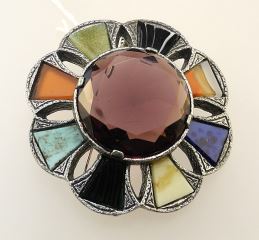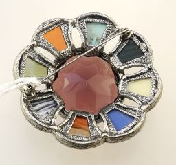 Scottish Style White Metal Specimen Inlaid Brooch, 61 Grams, 2 3/8" Diameter.