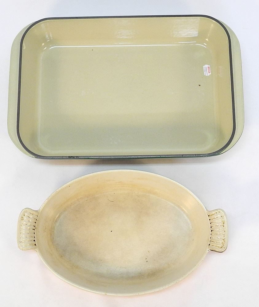 LOT 109 NEW Le Creuset Lasagna Pan, #40, Green & #28 Oval Flame Au Gratin Dish. Estimate: $150 - $200 Sold For: $170 Auction Date: Tuesday, September 26 2023 at 4:00 PM