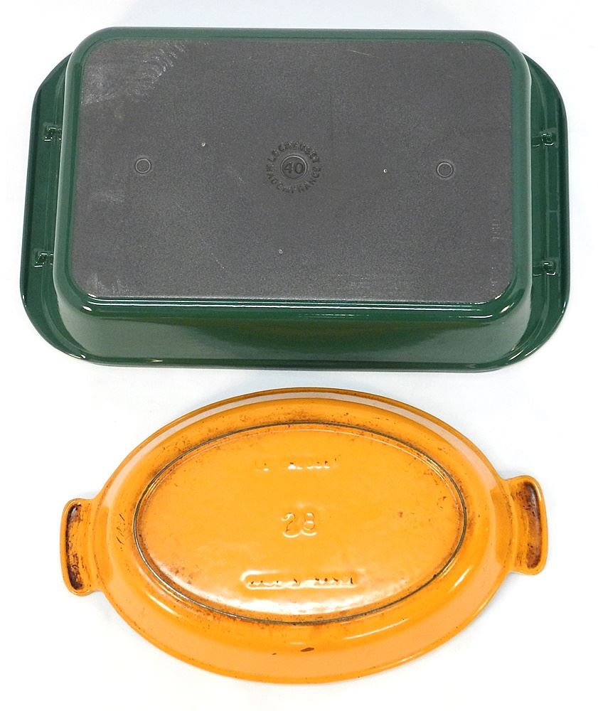NEW Le Creuset Lasagna Pan, #40, Green & #28 Oval Flame Au Gratin Dish.