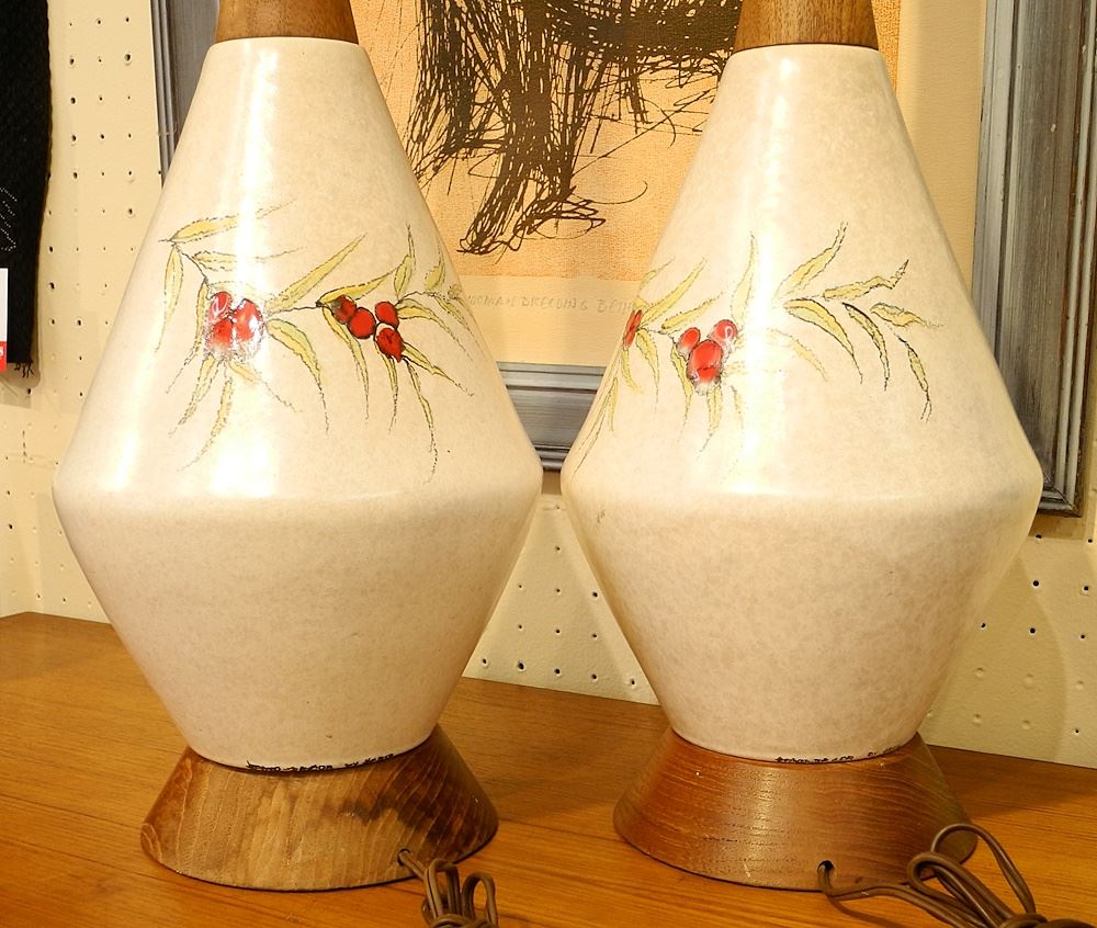 LOT 319 Pair of Teak and Ceramic Table Lamps signed "Hand Decor by Herta". Estimate: $100 - $200 Auction Date: Tuesday, September 26 2023 at 4:00 PM