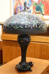 LOT 26 Leaded Glass Table Lamp, 29 1/2"H. Estimate: $100 - $150 Sold For: $110 Auction Date: Tuesday, September 26 2023 at 4:00 PM