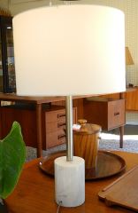 LOT 67 "H-Welldone" Contemporary Marble Base Table Lamp, 28"H (edge chip noted). Estimate: $60 - $100 Sold For: $50 Auction Date: Tuesday, September 26 2023 at 4:00 PM