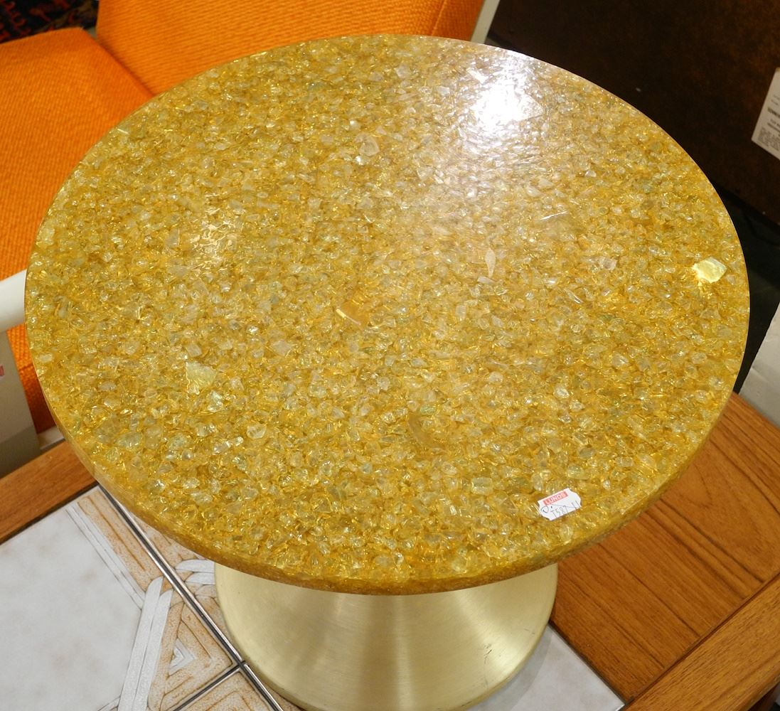 Vintage Spun Aluminum & Glitter Aggregate Pedestal Table, 14"H.