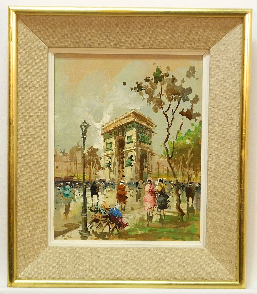 Oil on Canvas signed A(Antonio) Devity, 11 3/8" x 7 1/4", "Street Scenes".
