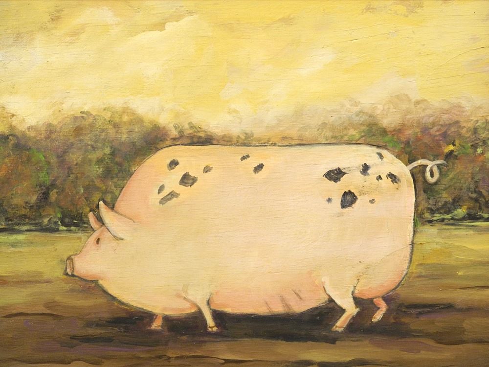 LOT 187 Naive Oil on Board signed B Block verso, 11 1/2" x 14 1/2", "Big Pig". Estimate: $60 - $100 Sold For: $180 Auction Date: Tuesday, September 26 2023 at 4:00 PM
