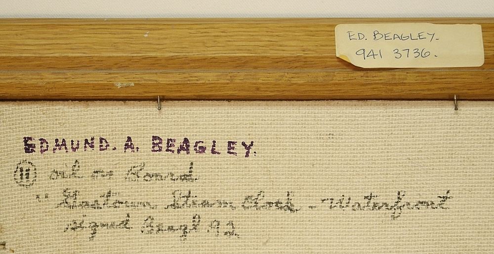 Oil on Board signed Beags'92 (Edmund Beagley), 23 1/4" x 17 1/4" "Gastown Steam Clock".