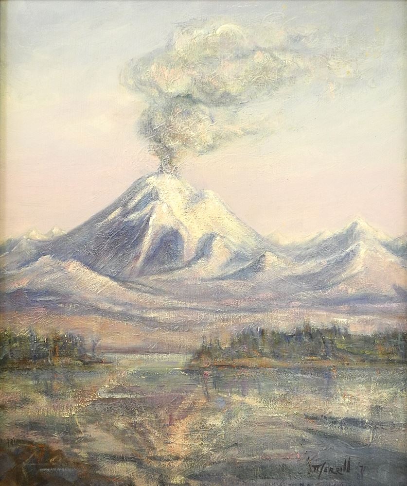 Oil on Masonite signed Merrill Peck "Mount Baker".