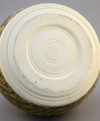 Porcelain Vase signed (Bob) Kingsmill, 5 1/8" x 6 1/4" diam. Fish and Bird Motif.