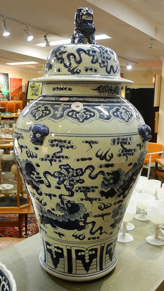 Chinese Blue and White Porcelain Vase, 30 1/2".