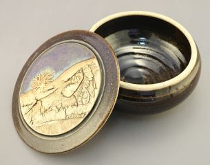 Robin Righton Pottery Bowl with lid, 3 1/2" x 6 1/2"W.