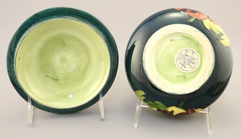 2 Moorcroft Covered Bowls, 3 1/2"H x 6"D / 3"H x 5"D.