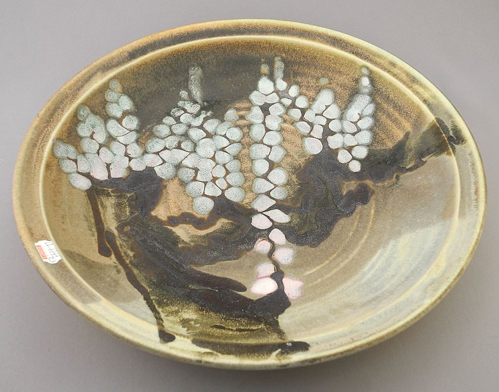 Stoneware Bowl Impressed Robin Hopper, 13 1/8" diameter.