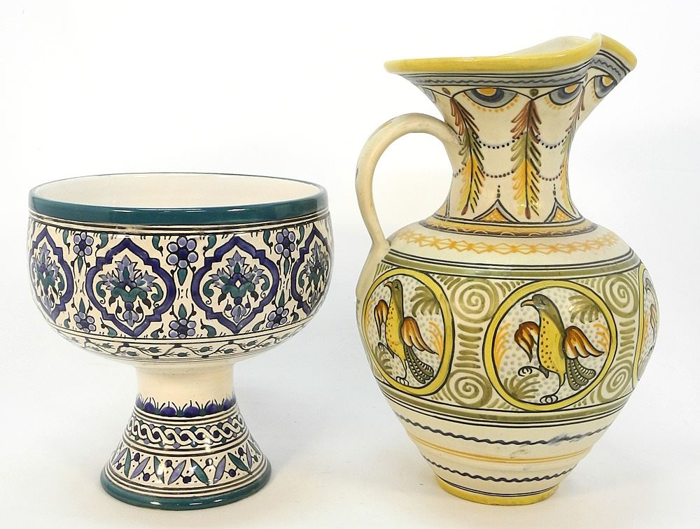3 pcs of Pottery: Portugal/Tunisia, Blue and White.