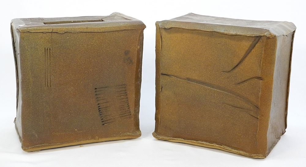Pair of Cubiform Stoneware Planter Boxes, 10 x 11 x 7 1/2".