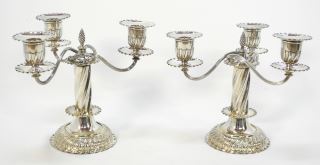 Pair of Silver Plated Covertable Candleabra, 8 1/8" X 9 7/8" X 9 7/8"