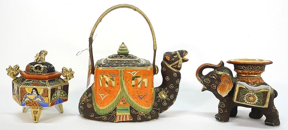 Collection of Japanese Kutani Wares: Teapot/Ashtray/Vases/Koro (figure restored).