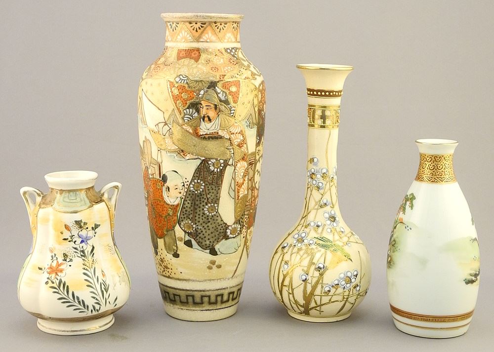 Collection of Japanese Kutani & Satsuma Wares: Vases/Sake, 1 1/2" - 8 5/8"H (cup chipped).