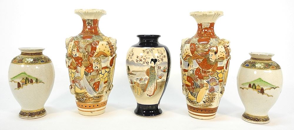 LOT 254 5 Satsuma Vases, 6 1/8" - 9 3/4"H. Estimate: $100 - $150 Auction Date: Tuesday, February 06 2024 at 4:00 PM