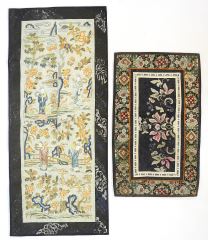 LOT 298 Qing Silk Sleeve Panel (22 1/2 x 9 3/4") & Embroidery Panel (14 x 8 1/2") (condition noted). Estimate: $50 - $60 Auction Date: Tuesday, February 06 2024 at 4:00 PM