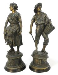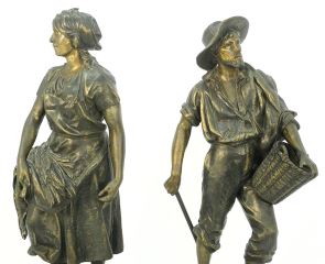 LOT 116 Pair of Spelter Figures signed L. Weiss, 26 1/2"H, "Harvesters". Estimate: $150 - $300 Auction Date: Tuesday, February 06 2024 at 4:00 PM