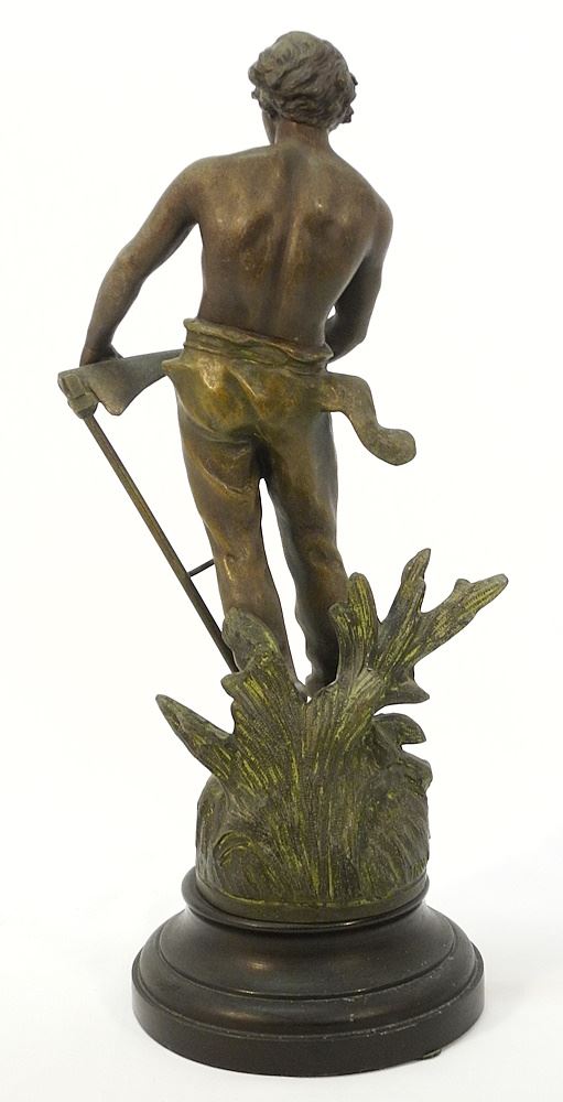 LOT 248 Spelter Figure signed Louis Moreau, 18 1/4"H, "Faucheur". Estimate: $100 - $200 Sold For: $90 Auction Date: Tuesday, February 06 2024 at 4:00 PM