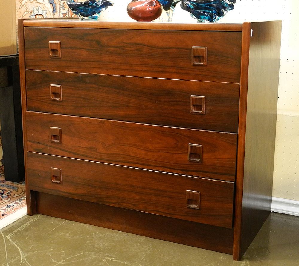 LOT 102 Danish Modern Style Rosewood Low Chest, 29 3/4"H. Estimate: $200 - $300 Sold For: $200 Auction Date: Tuesday, February 06 2024 at 4:00 PM