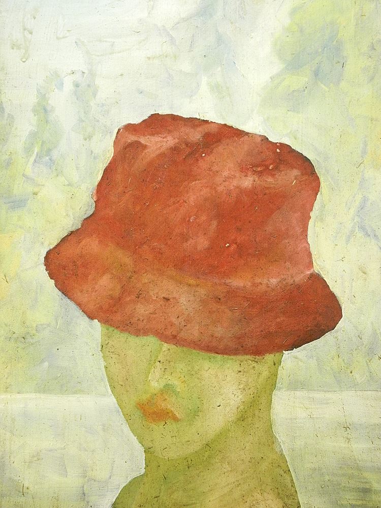 Oil & Mixed Media signed Brandy Banman Verso, 23 1/2" x 47 1/2", "Antique Hat".