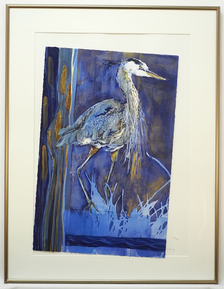 LOT 228 Monoprint signed Carolyn Houg, 22" x 14 3/8", "Evening Wade" #1/1. Estimate: $80 - $120 Sold For: $70 Auction Date: Tuesday, February 06 2024 at 4:00 PM