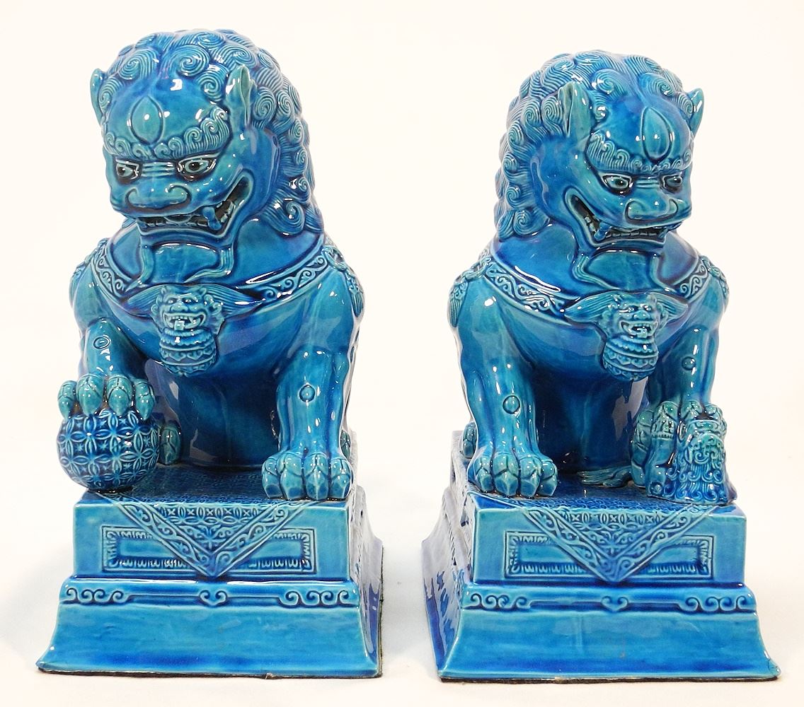 LOT 24 Pair of Buddhist Lion Dogs, Glazed Porcelain, 11 1/4"H. Estimate: $80 - $100 Sold For: $160 Auction Date: Tuesday, February 06 2024 at 4:00 PM