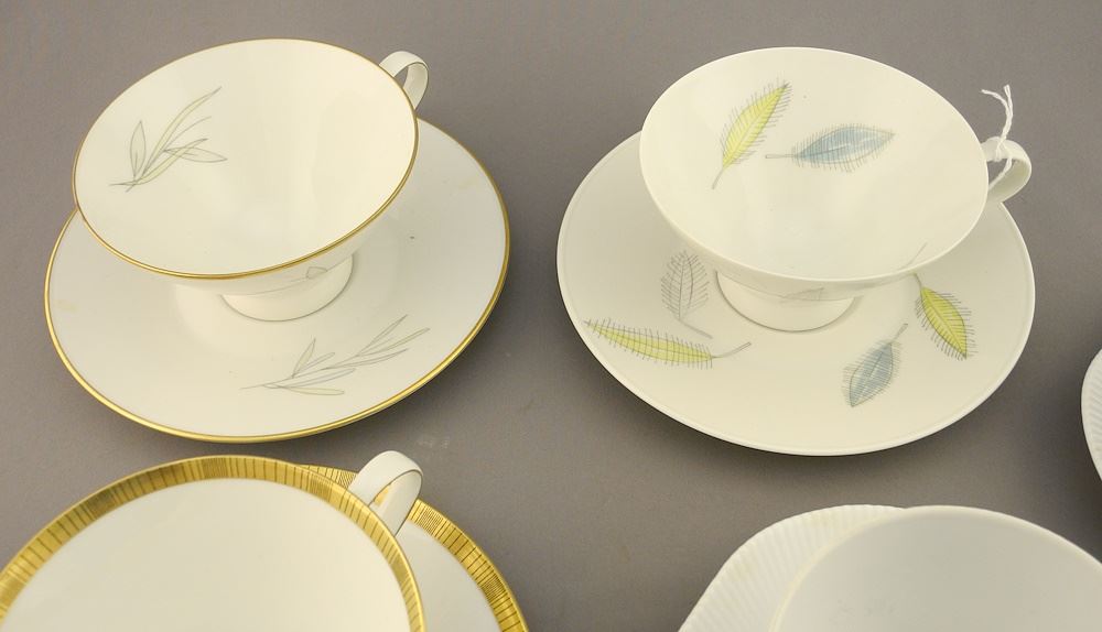 LOT 37 5 Porcelain Teacups & Saucers: 3 Rosenthal, Raymond Loewy Form 2000, 2 Upsala-Ekeby. Estimate: $60 - $100 Auction Date: Tuesday, February 06 2024 at 4:00 PM