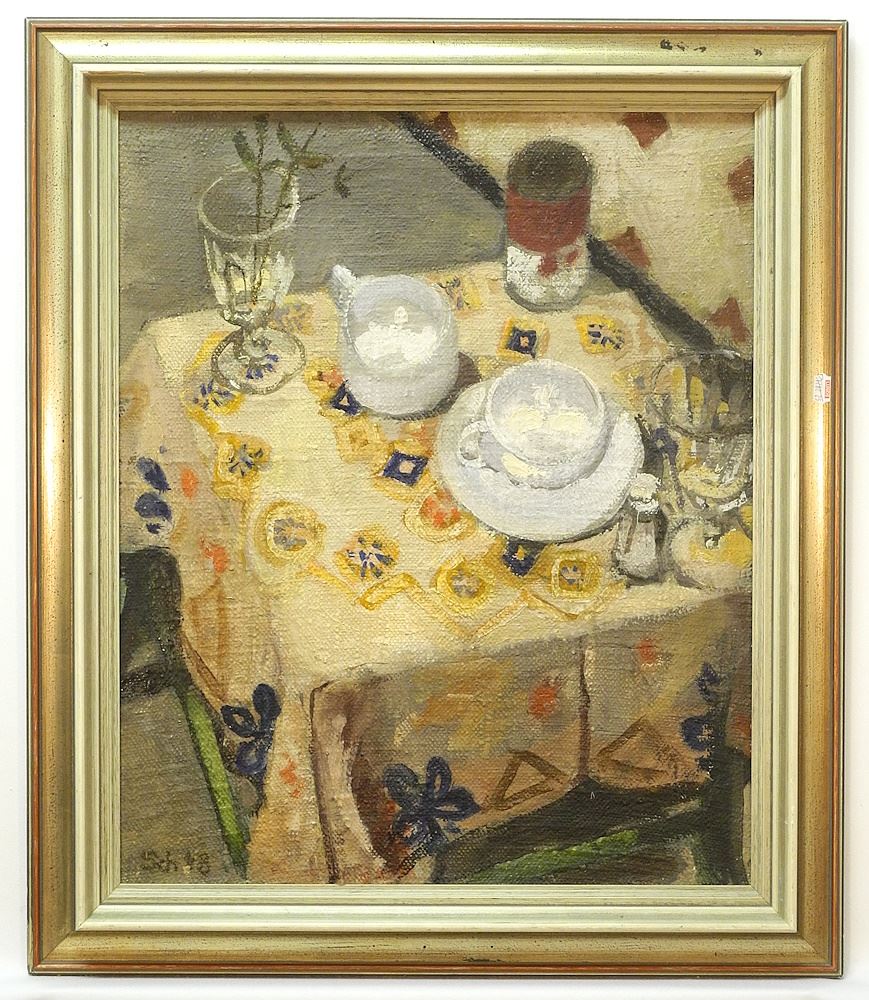 LOT 321 Oil on Canvas Still Life, 21 x 17 1/4", "Campbells Soup Can signed SCH 48. Estimate: $60 - $100 Sold For: $100 Auction Date: Tuesday, February 06 2024 at 4:00 PM