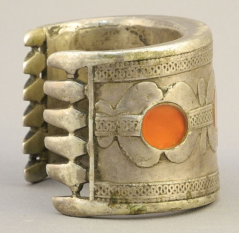 Turkmenistan Silver Alloy Cuff Bracelet, Carnelian Features, 97 Gms , 1 3/4"W.