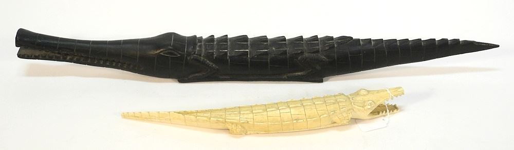 LOT 265 2 African Alligator Carvings, 15 1/4 x 27"L, NO EXPORT. Estimate: $60 - $100 Auction Date: Tuesday, February 06 2024 at 4:00 PM