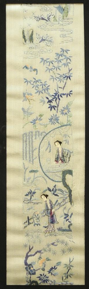 Pair of Qing Silk Sleeve Panels, 16 3/4 x 4 5/8" (as found).