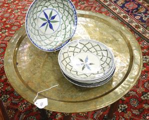 LOT 77 Middle Eastern Engraved Brass Folding Tray Table, 22 3/8" x 22 3/8" Diameter. Estimate: $80 - $120 Sold For: $80 Auction Date: Tuesday, February 06 2024 at 4:00 PM