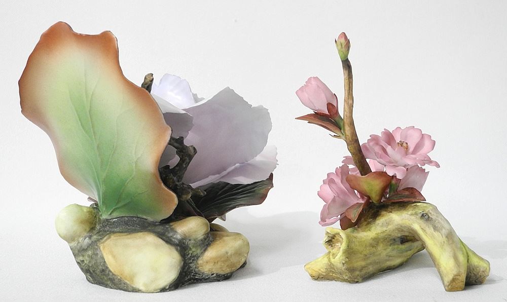 Boehm Bone Porcelain Collection, "Angel Face Rose", 7" & "Cherry Blossom", 5 1/2".