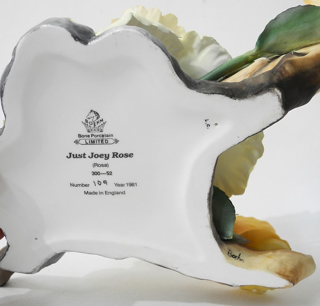 LOT 132 Boehm Bone Porcelain Collection, "Just Joey Rose", 11". Estimate: $60 - $100 Sold For: $110 Auction Date: Tuesday, February 06 2024 at 4:00 PM
