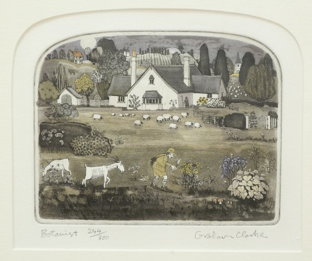 LOT 318 Aquatint Etching signed Graham Clarke, 6 1/2" x 8", "Botanist" (wobbles noted). Estimate: $60 - $100 Sold For: $110 Auction Date: Tuesday, February 06 2024 at 4:00 PM