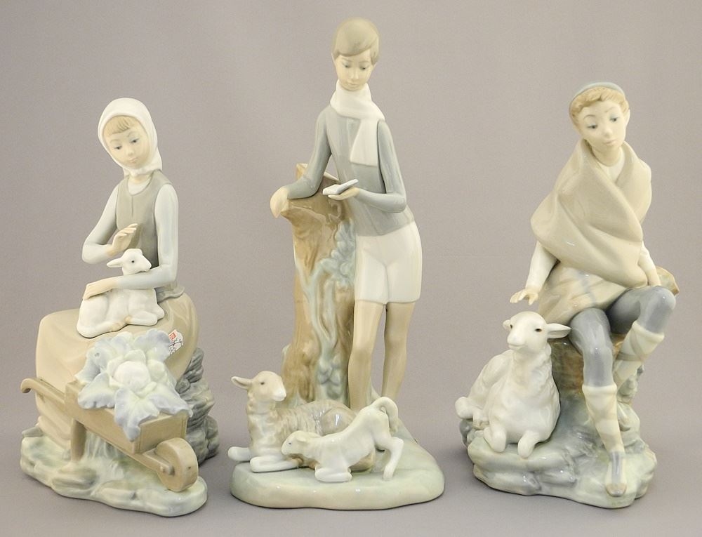 3 Lladro Shepherding Figurines, 9 1/8 - 11 1/8"H.