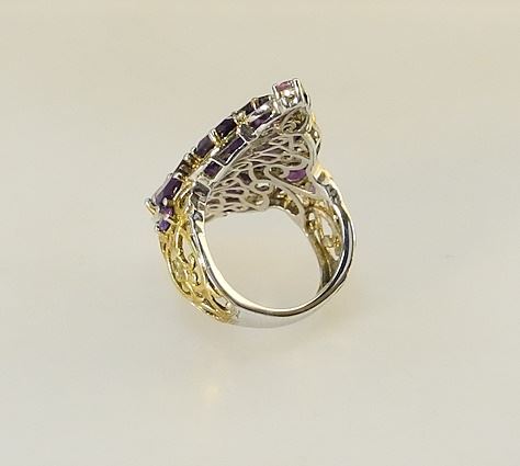LOT 129 Gilt Silver (marked 925) Amethyst & Pink Stone Ring, Size 7, 7.75 Grams. Estimate: $180 - $240 Auction Date: Tuesday, February 06 2024 at 4:00 PM