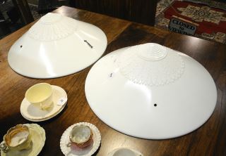 Pair of Soft-Lite Phoenix Glass Co. Pendant Ceiling Fixtures, 18" Diam.