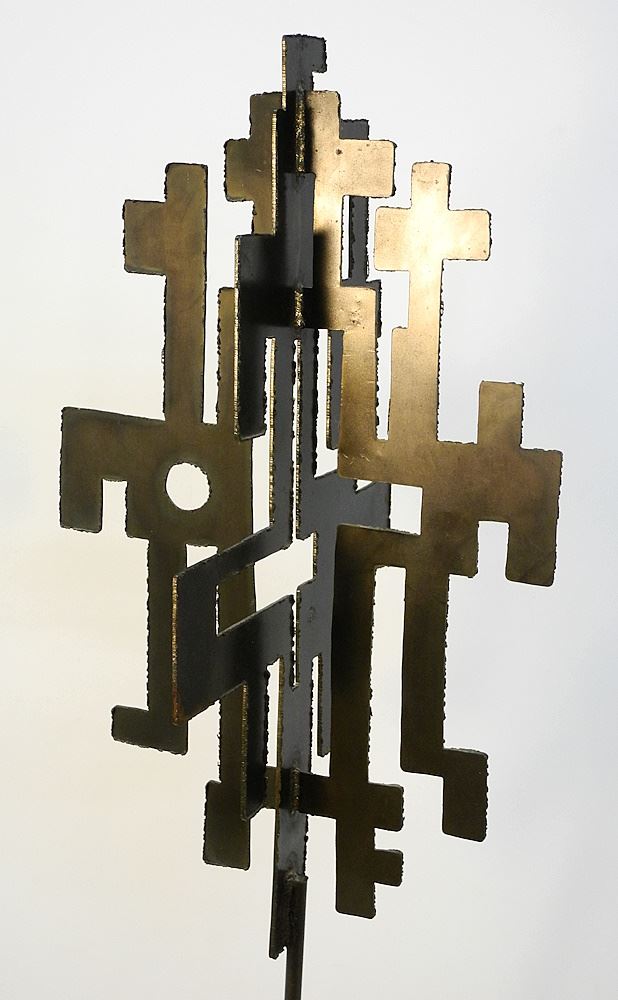 LOT 14 Steel Sculpture Monogrammed CAD, 38 1/2" x 11" x 11", "Totemic Object" (as found). Estimate: $150 - $250 Auction Date: Tuesday, February 06 2024 at 4:00 PM